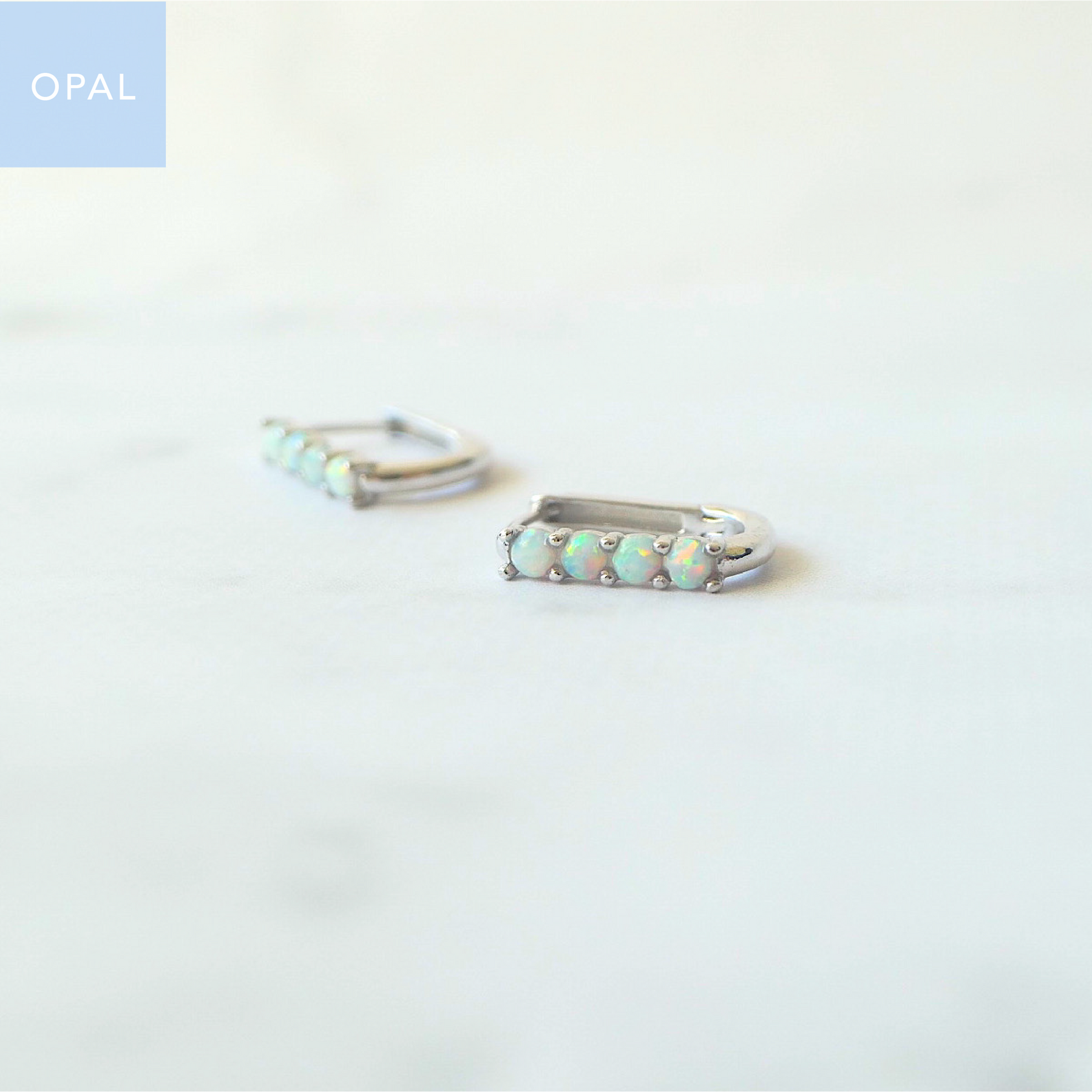 オパール付きカーブハギーピアス、シルバー925・ロジウムメッキ、金属アレルギー対応