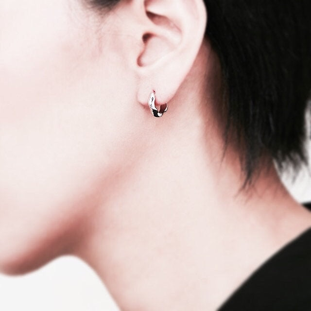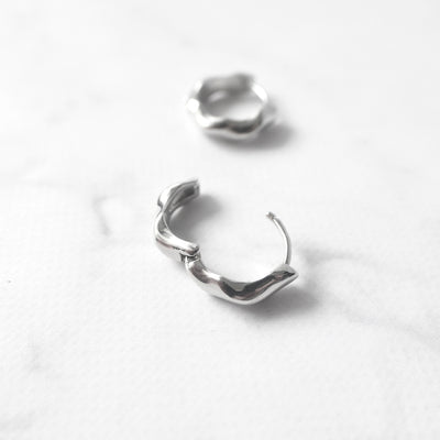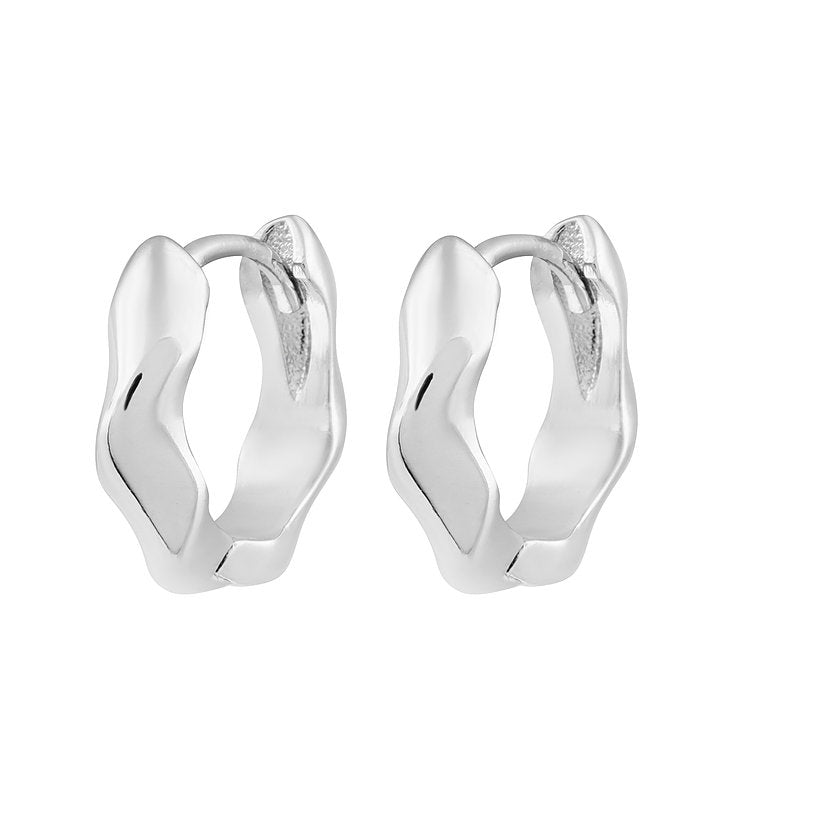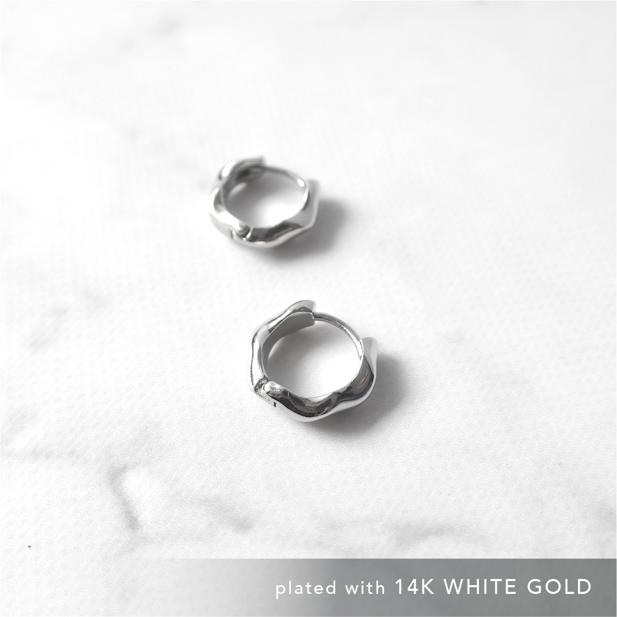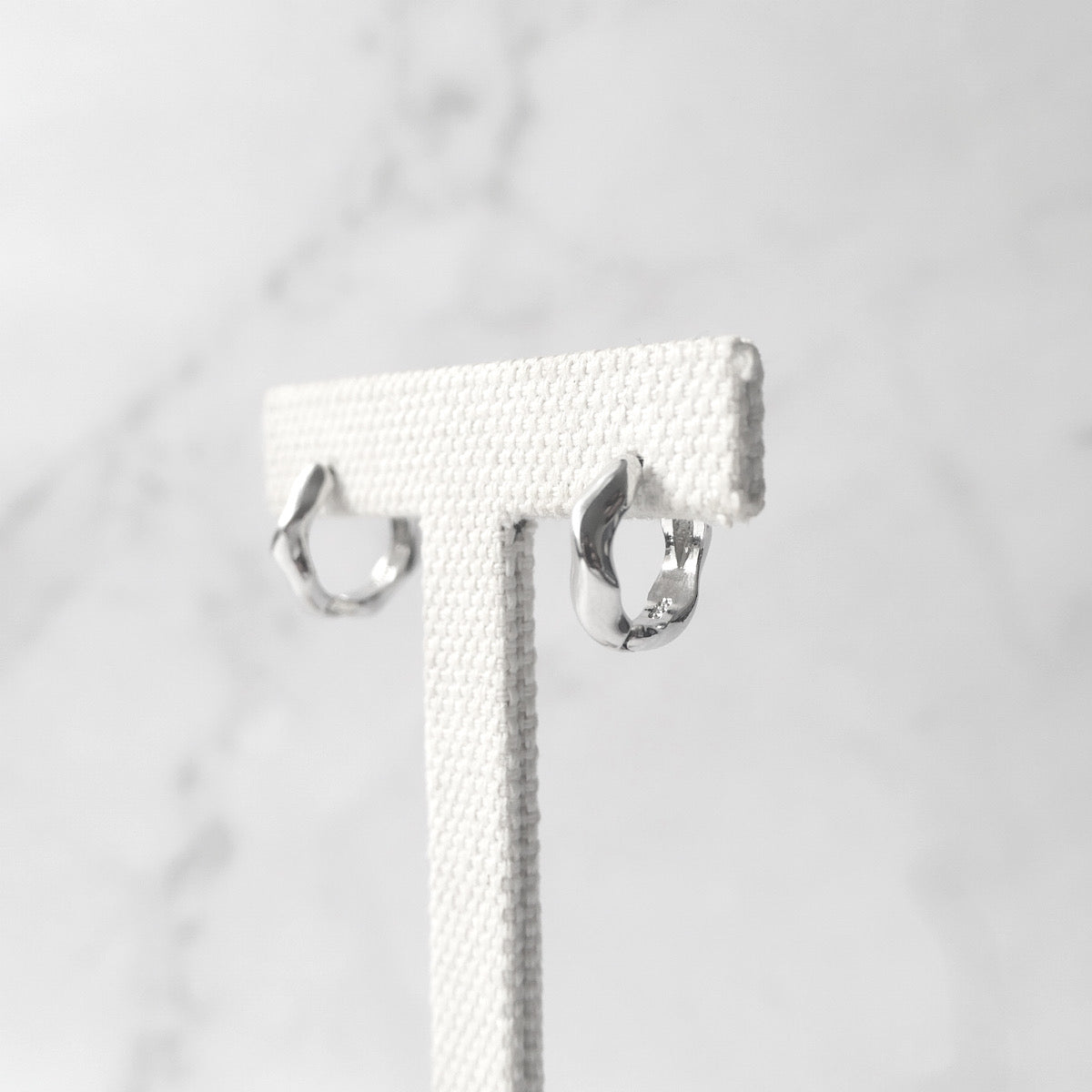 Curve Line Round Huggie Earrings – 925 Sterling Silver, 14K White Gold Plated