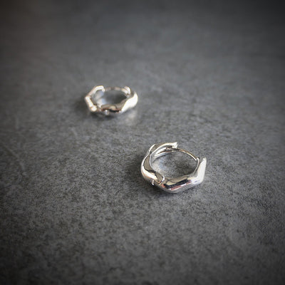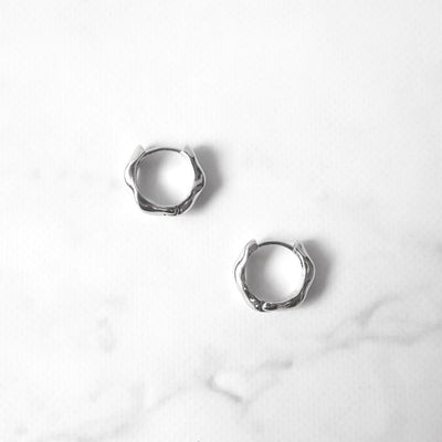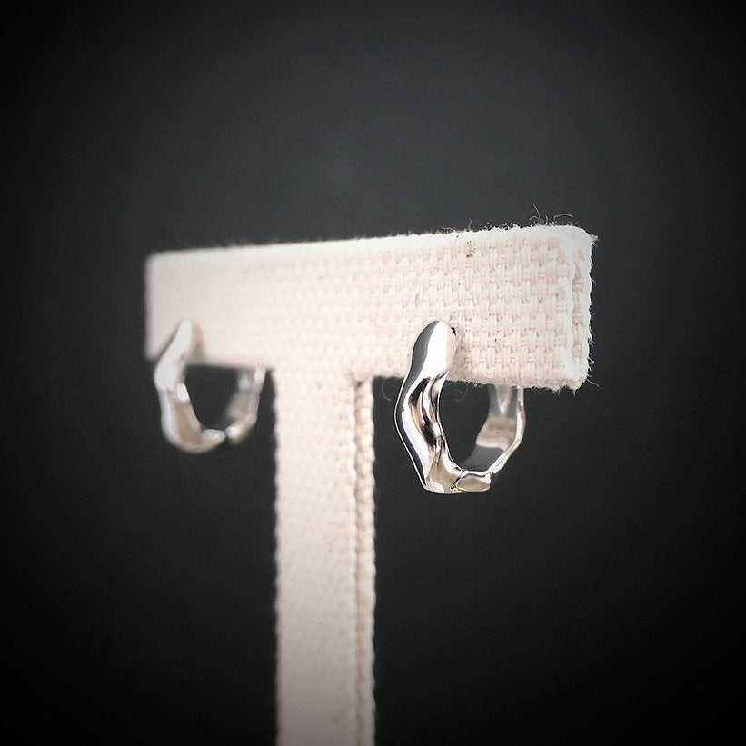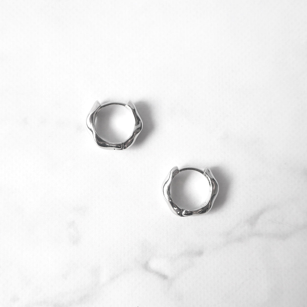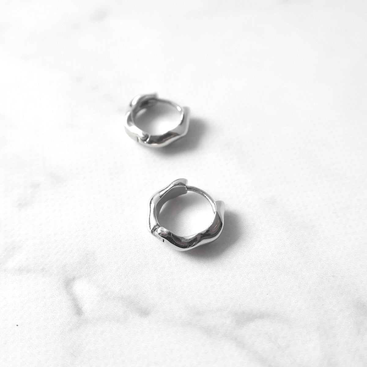 Curve Line Round Huggie Earrings – 925 Sterling Silver, 14K White Gold Plated