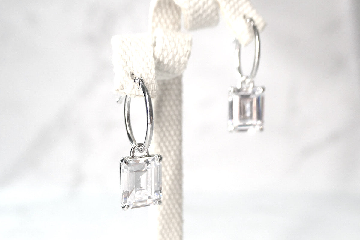 Emerald-Cut Zirconia Dangle Hoop Earrings – 925 Sterling Silver