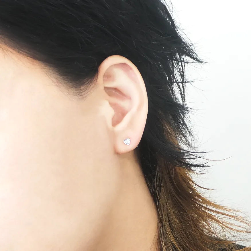Delicately cut heart-motif stud earrings designed to reflect light beautifully from every angle.