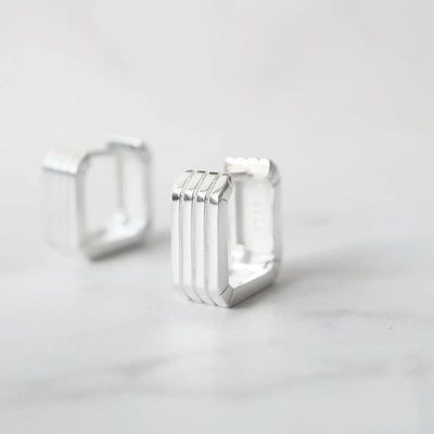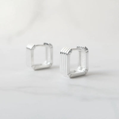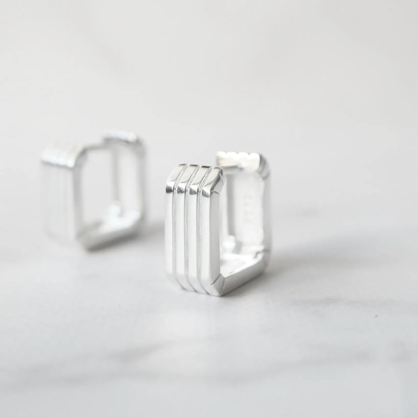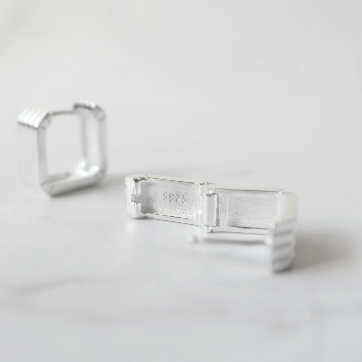Stripe Texture Square Hoop Earrings – 925 Sterling Silver
