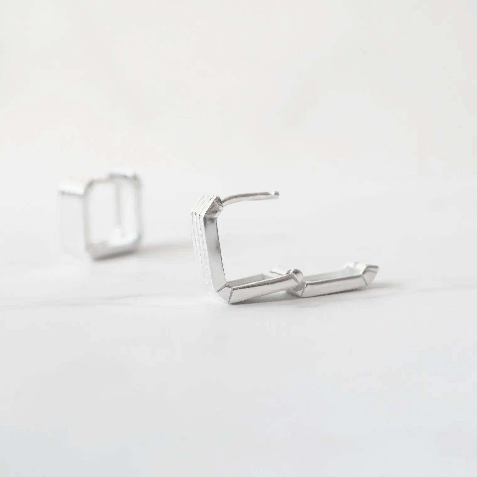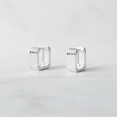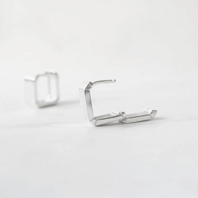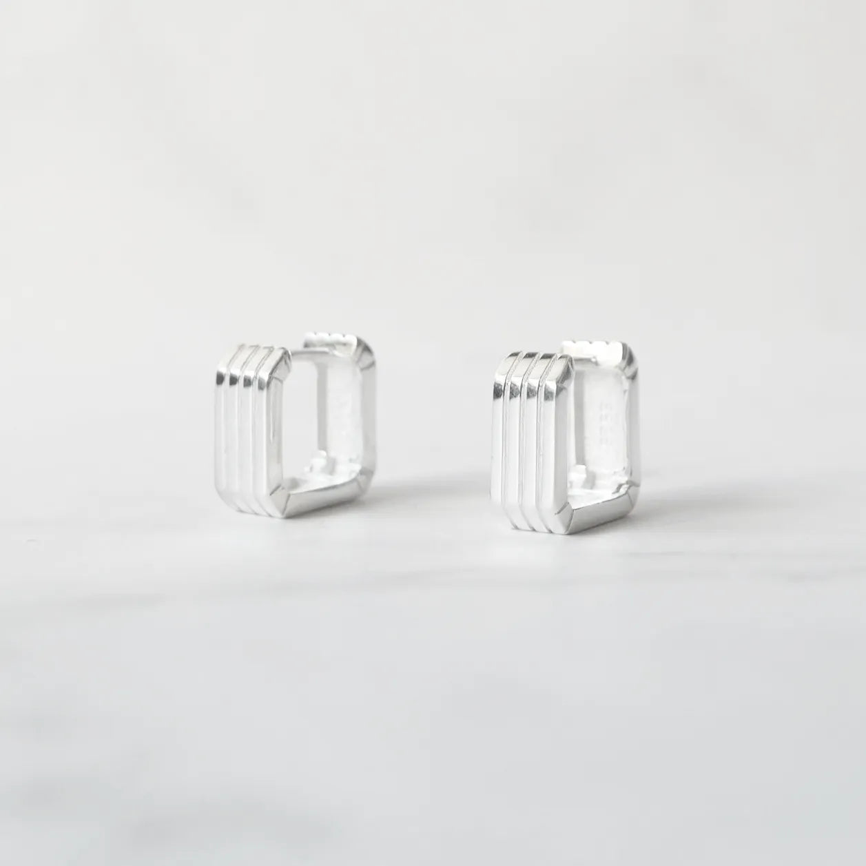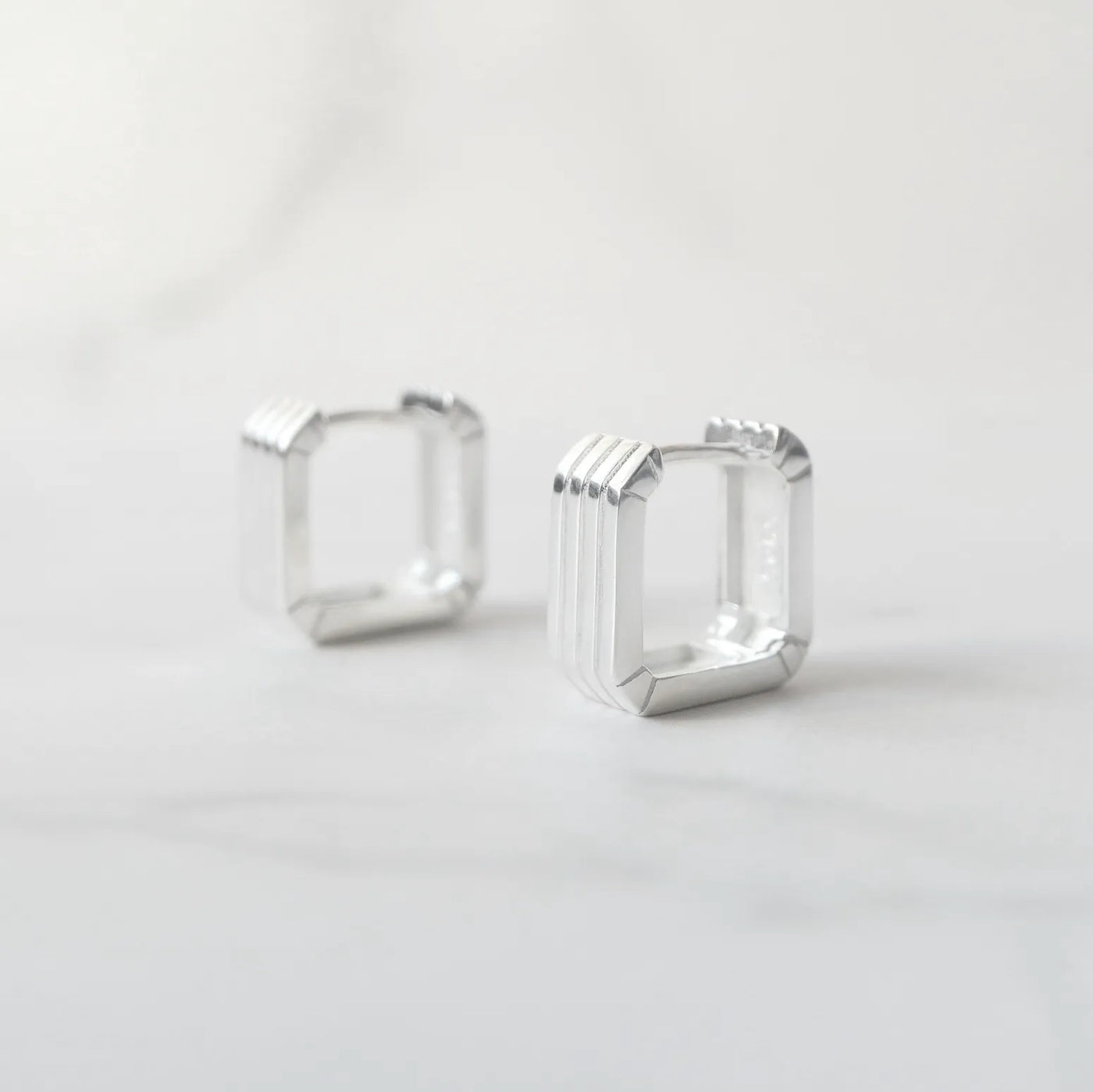 Stripe Texture Square Hoop Earrings – 925 Sterling Silver