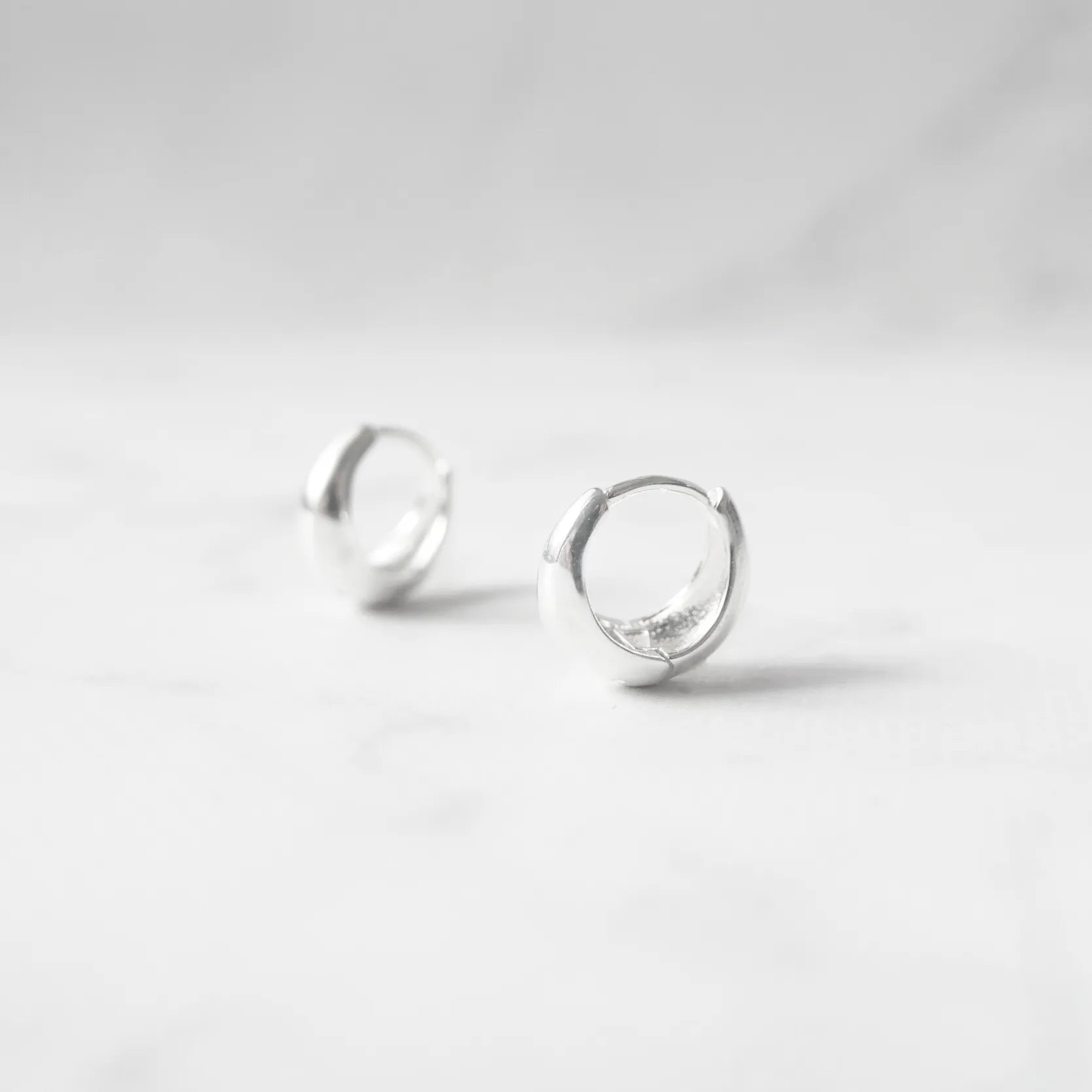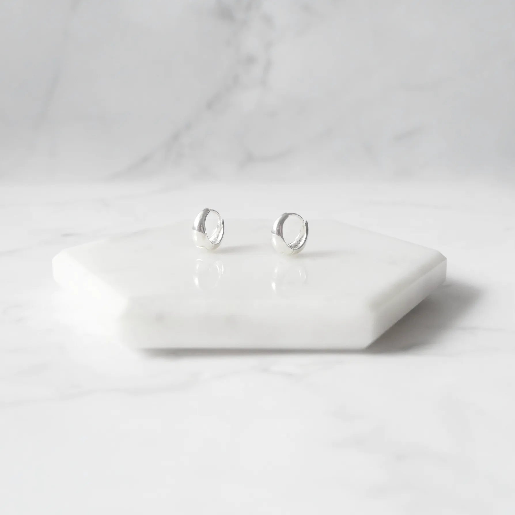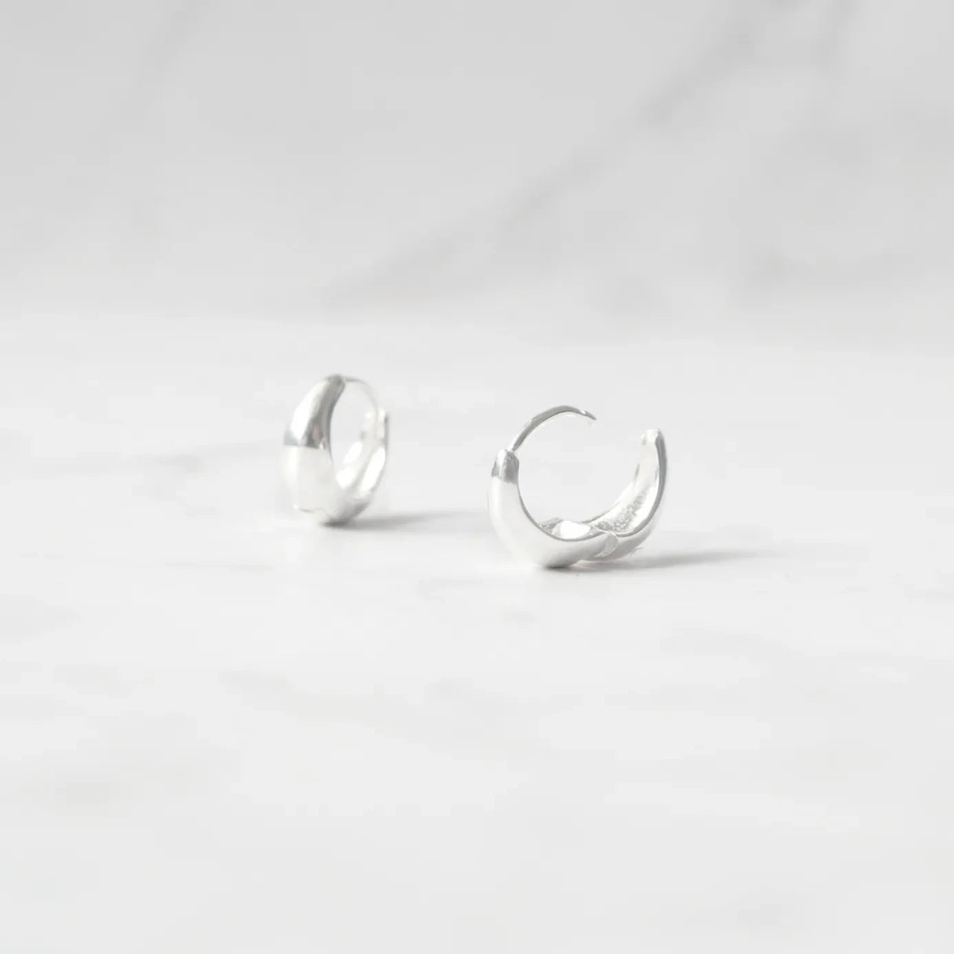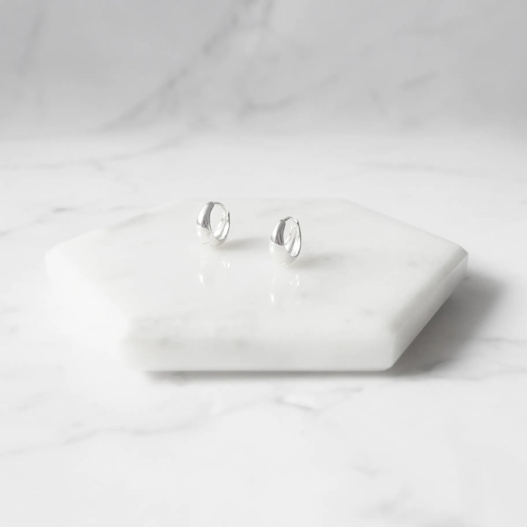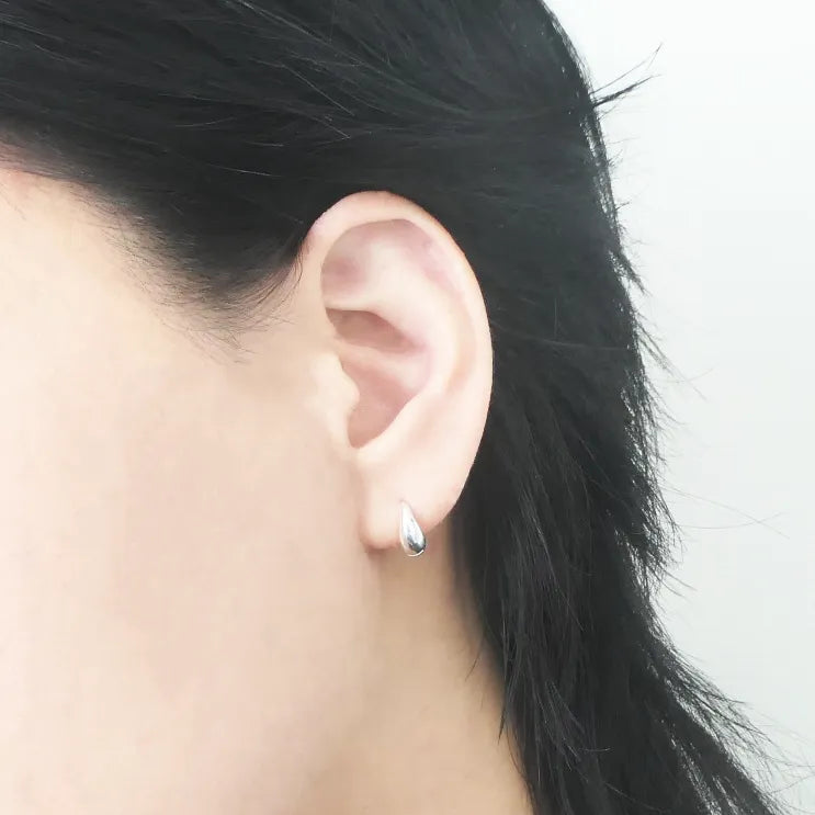 シルバー925の素材そのものの美しさを生かした、クラシックなハギースタイルのピアス。余計な装飾を省いたシンプルなフォルムは、どんなコーディネートにも自然に溶け込みます。ミニマルながらもほどよいボリューム感があり、毎日身に着けても飽きのこない定番デザインです。