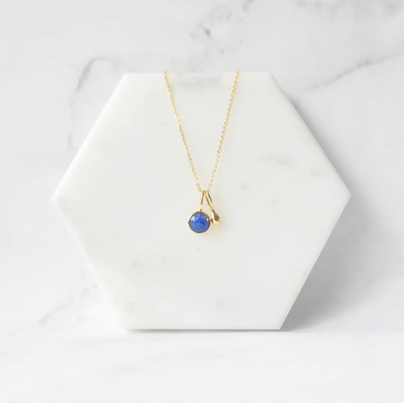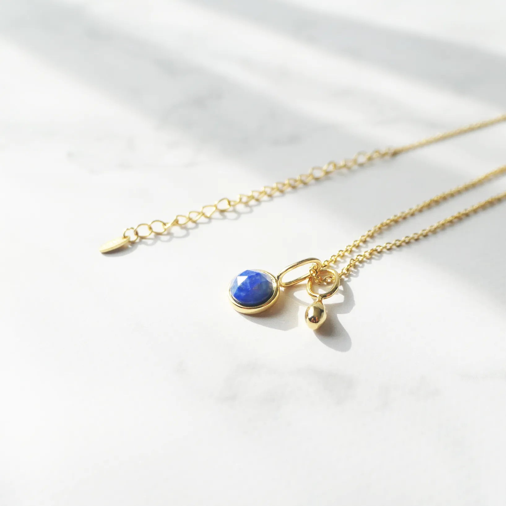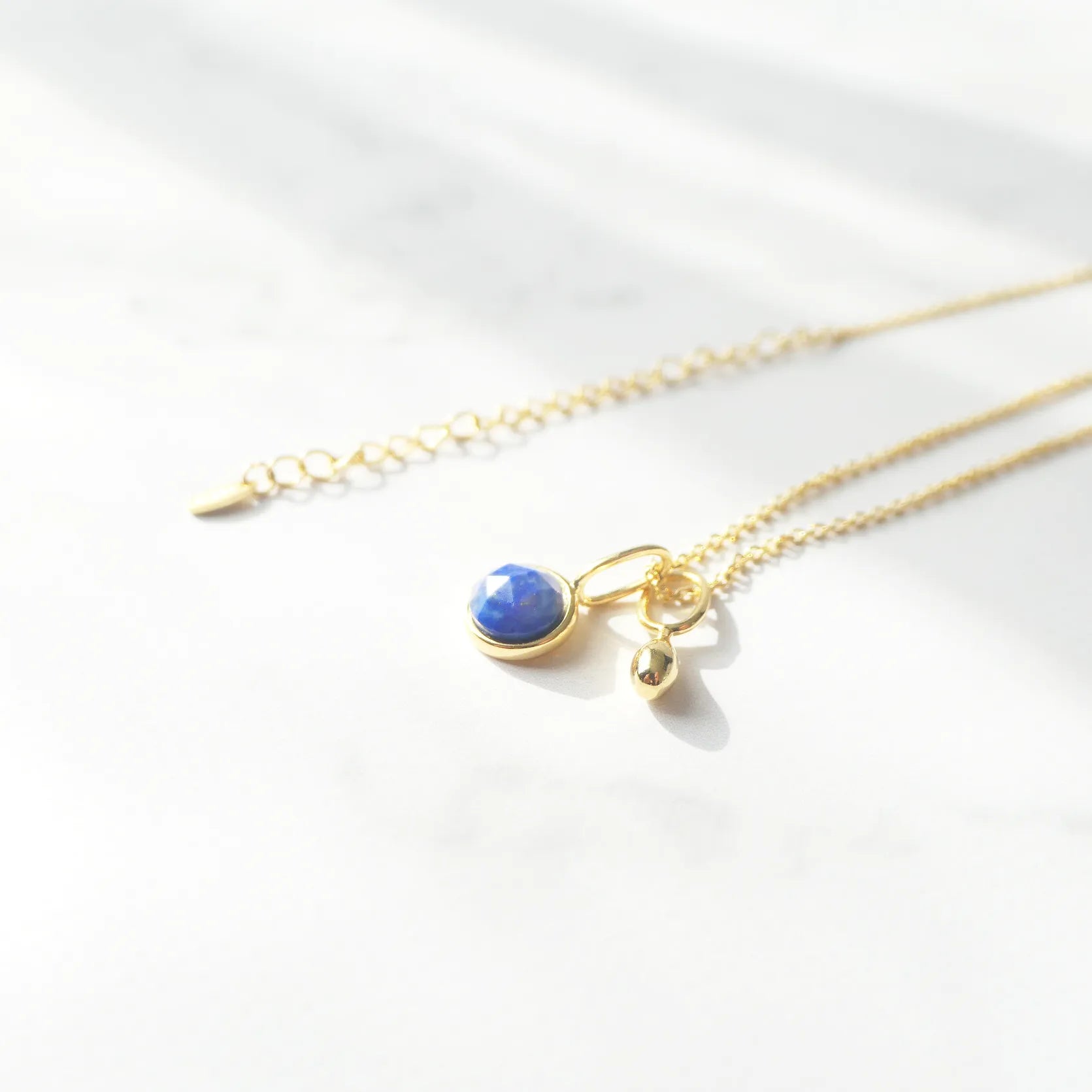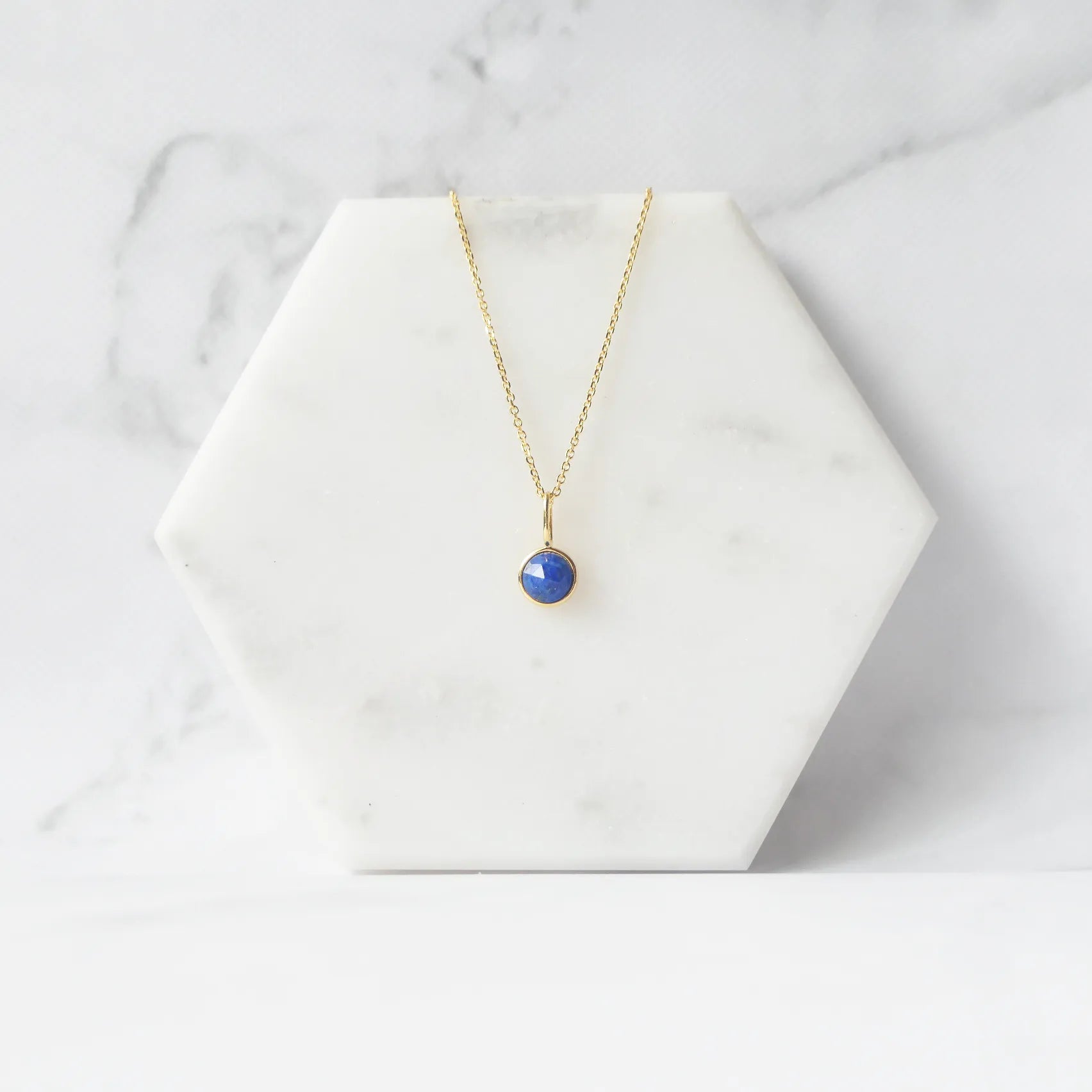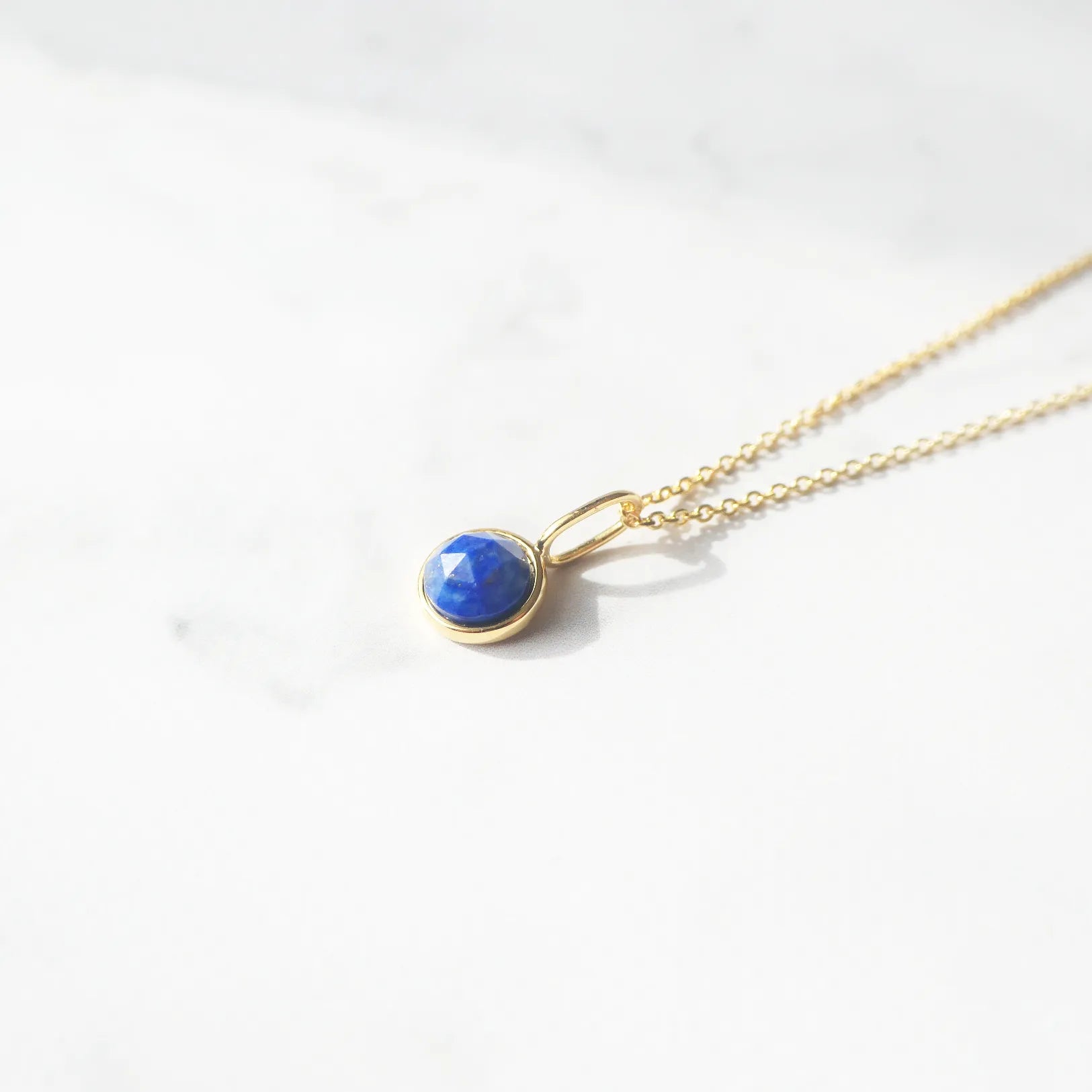 深く澄んだブルーが美しい天然ラピスラズリを、繊細な多面カットで仕上げたネックレス。光を受けるたびに表情を変え、柔らかくも力強い輝きを放ちます。サイドにあしらった小さなゴールドボールが、やわらかな温もりと高級感を添えるアクセントに。ゴールドとラピスブルーの組み合わせは、古くから「王の色」と呼ばれるほどのクラシックな配色。深い青が18Kゴールドの光を引き立て、華やかさと知性を兼ね備えた印象に仕上げます。シンプルにも華やかにも着けられる2WAYデザインです。