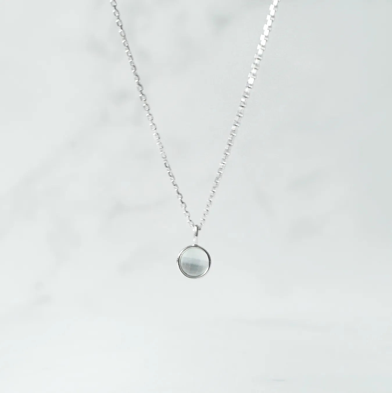 やさしい光沢を放つマザーオブパールを使用した、ネックレスとダングルピアスの2点セット。繊細なチェーンの中央に天然石をあしらったシンプルなネックレスと、耳元にやわらかな華やかさを添えるピアスを同じロジウムプレーティング仕上げで統一。デイリーにもフォーマルにも活躍する、上品で万能な組み合わせです。