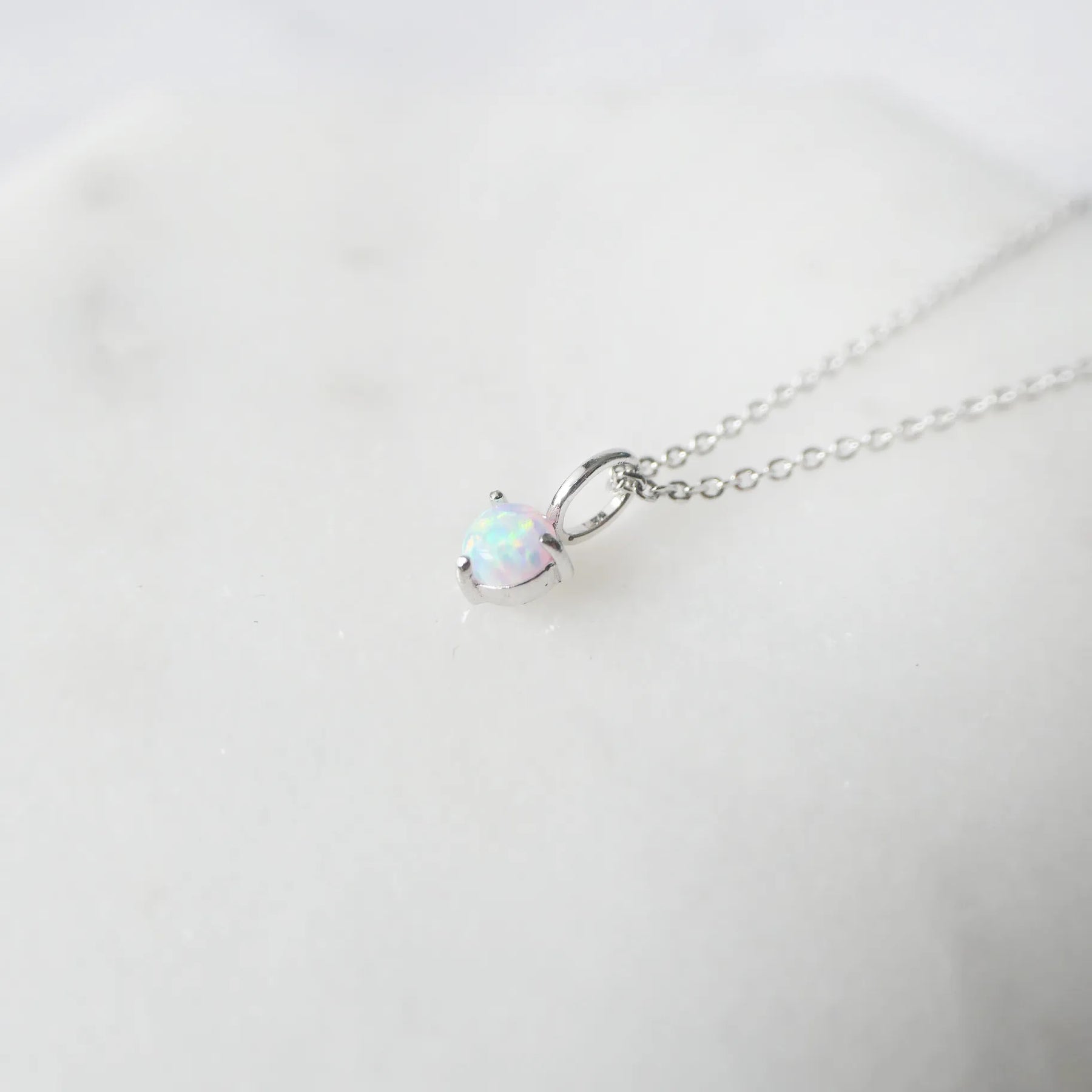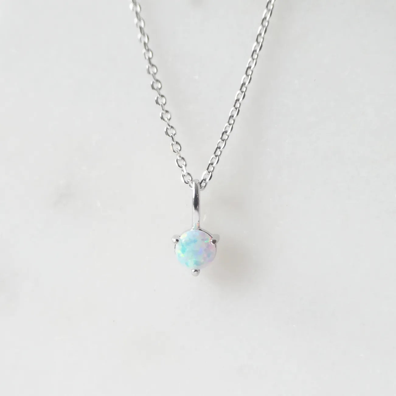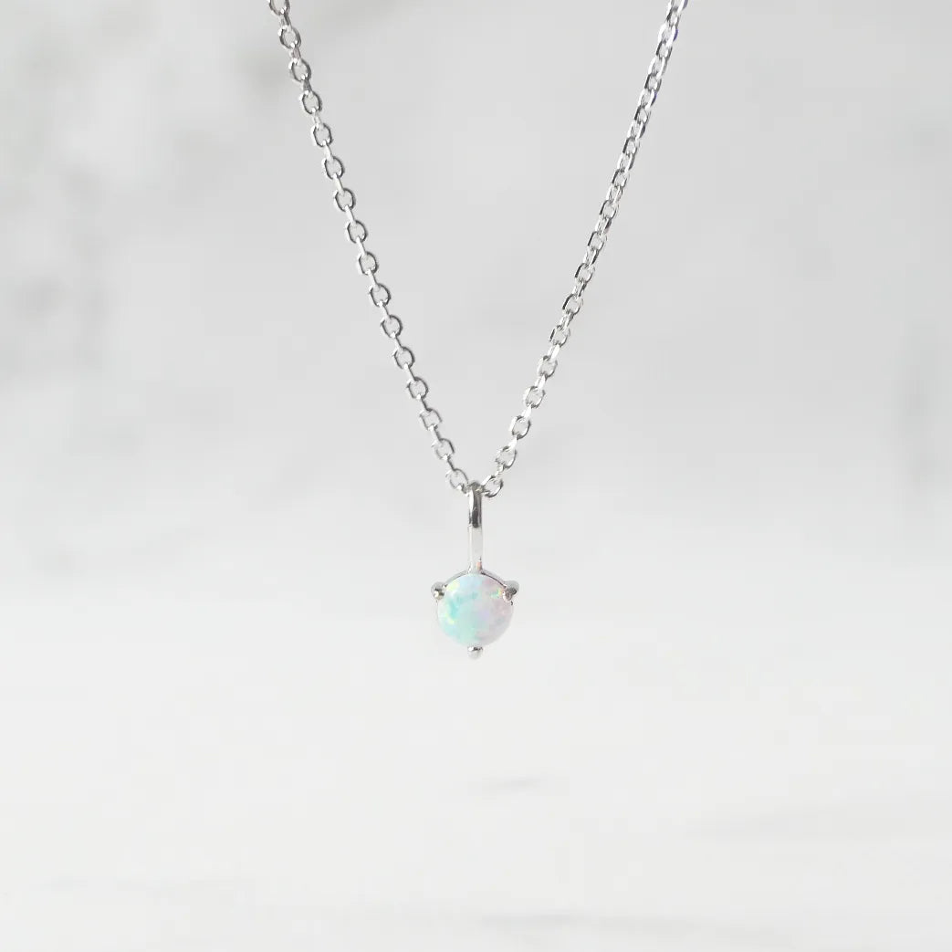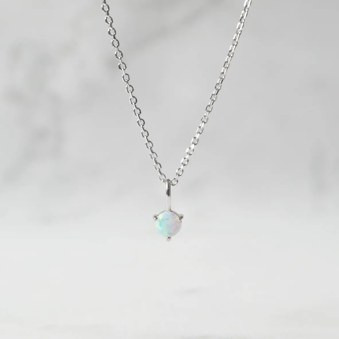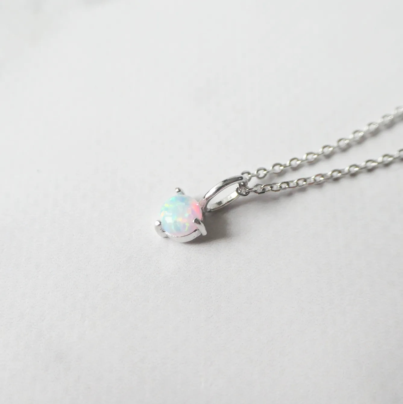 虹色の遊色効果をもつ天然オパールを一粒だけセットした、シンプルで軽やかなソリティアネックレス。さりげないサイズ感で、単品使いはもちろん、他のネックレスとのレイヤードにもぴったりです。
