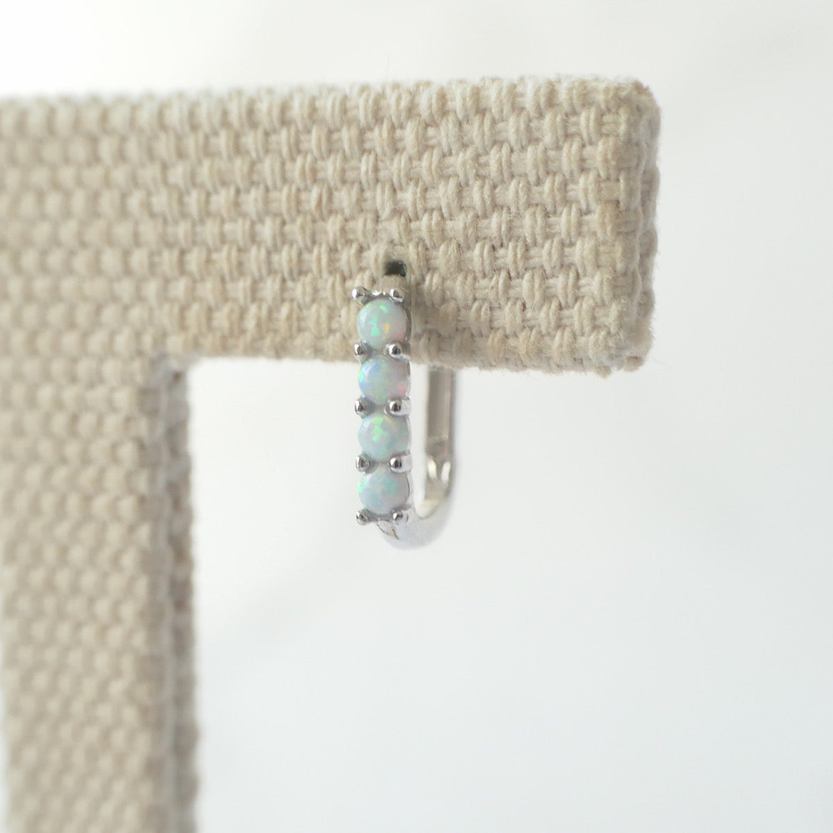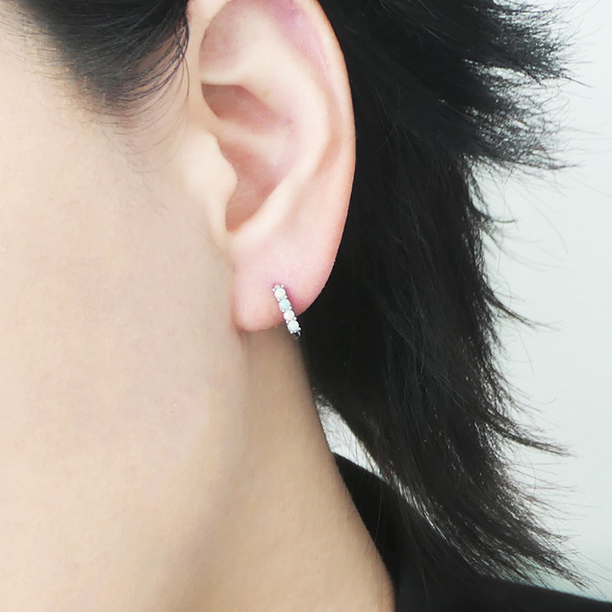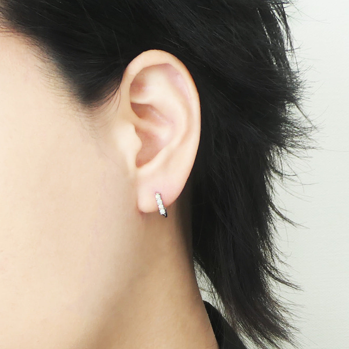 小粒の天然オパールを一粒ずつ丁寧に連ね、透明感あふれるピアスに仕上げています。 光の角度によってやさしく色づく、表情豊かなデザインが、自然の美しさと想いを静かに映し出します。