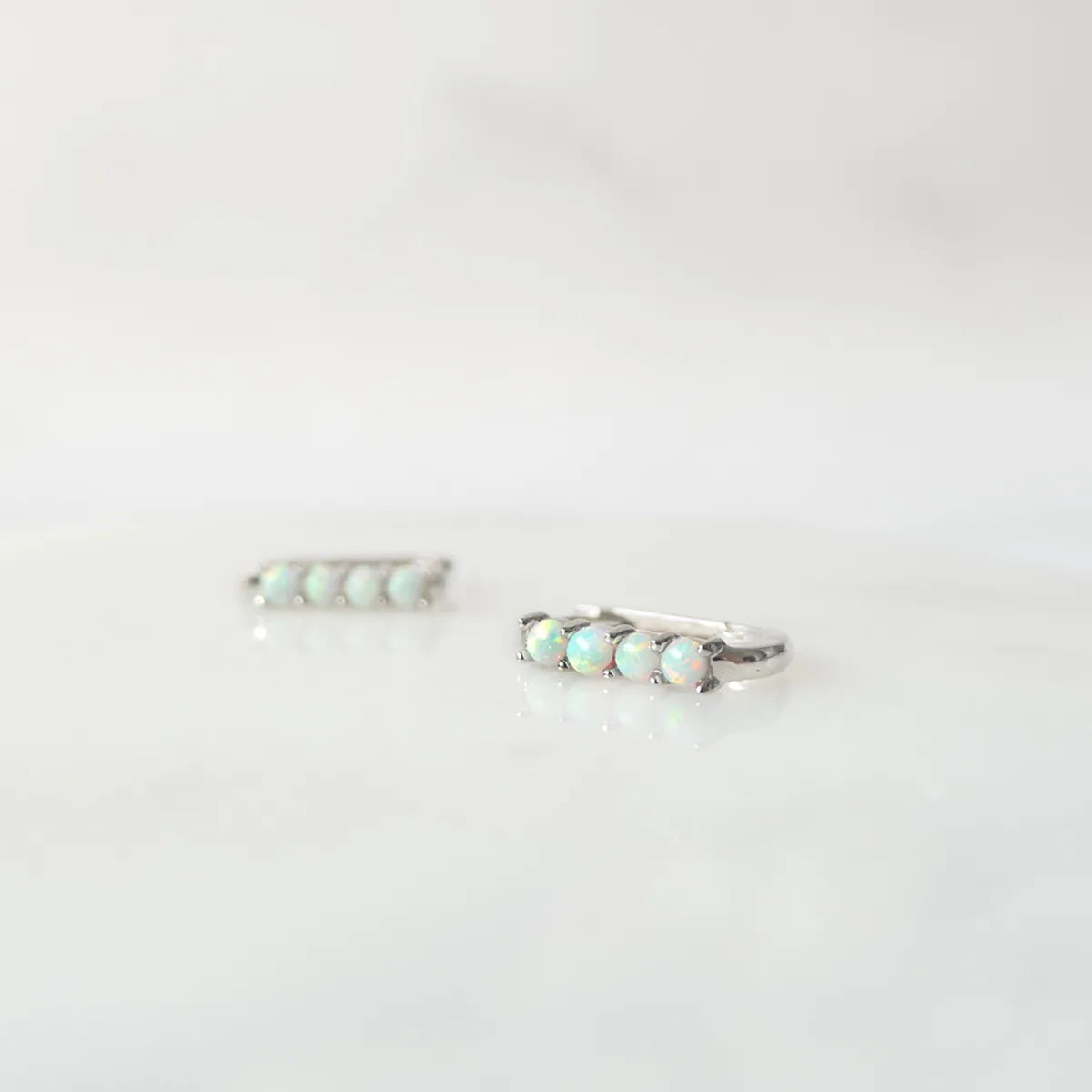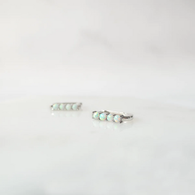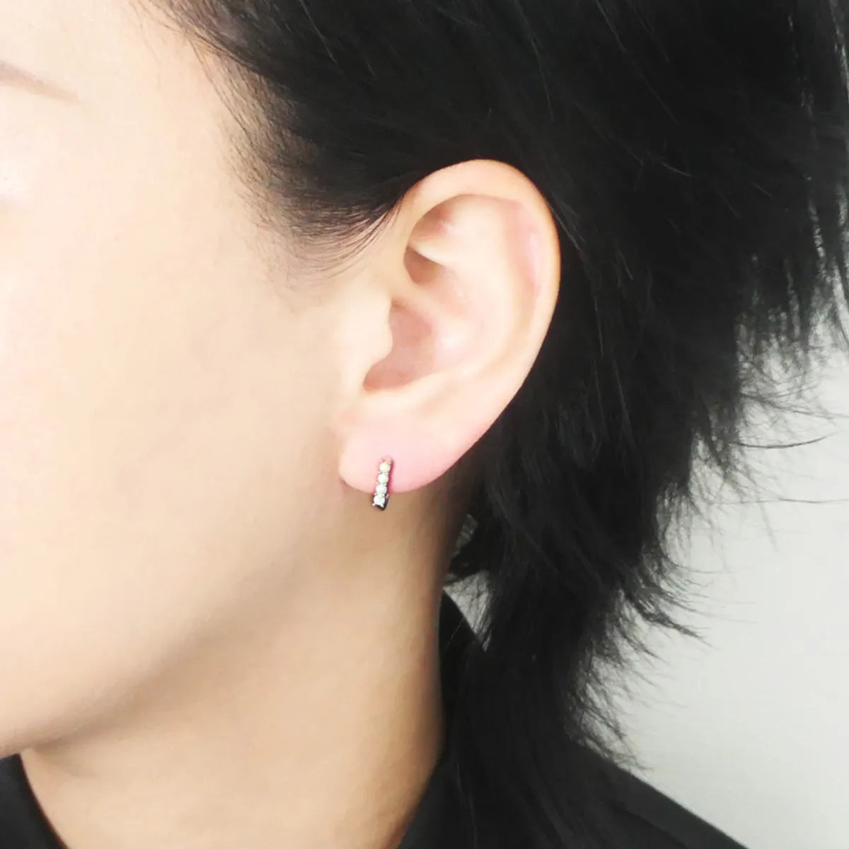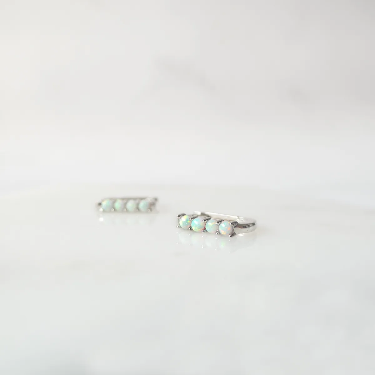 小粒の天然オパールを一粒ずつ丁寧に連ね、透明感あふれるピアスに仕上げています。 光の角度によってやさしく色づく、表情豊かなデザインが、自然の美しさと想いを静かに映し出します。