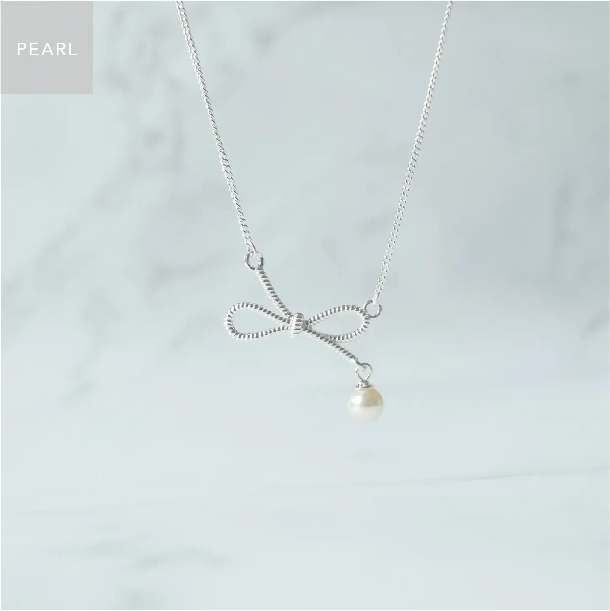 リボン×パール ペンダントネックレス(シルバー925)、6月誕生石、蟹座・魚座・牡牛座、金属アレルギー対応