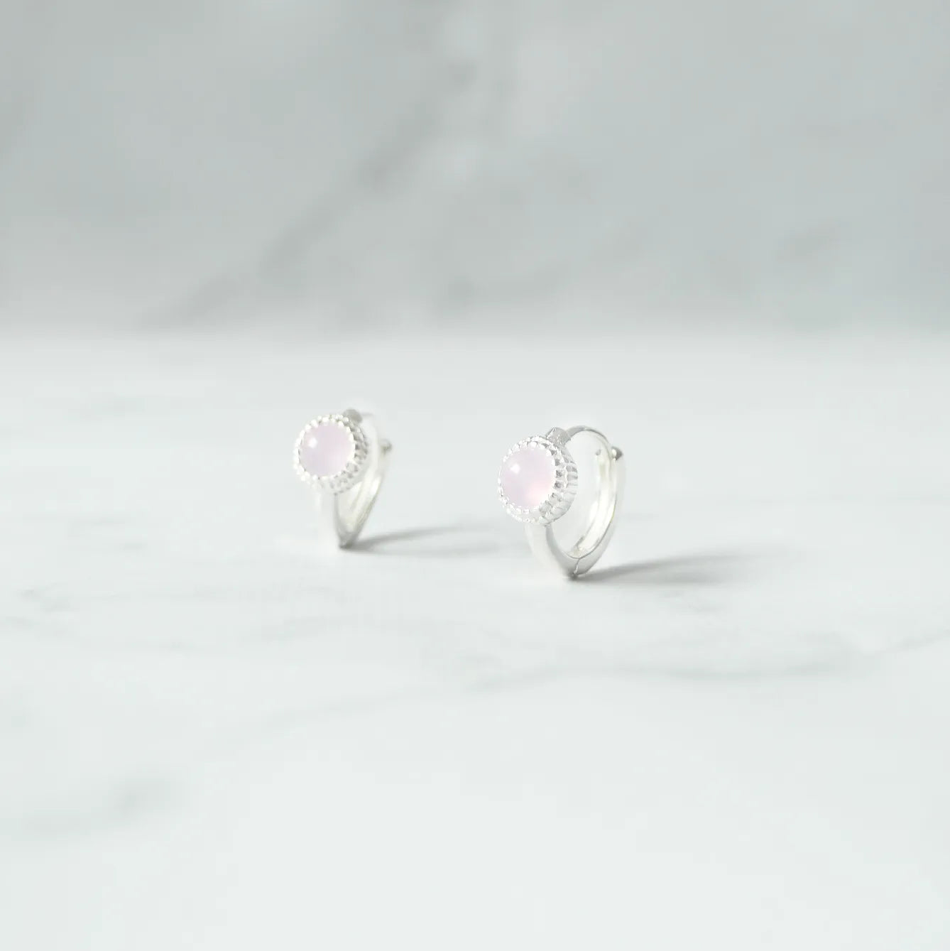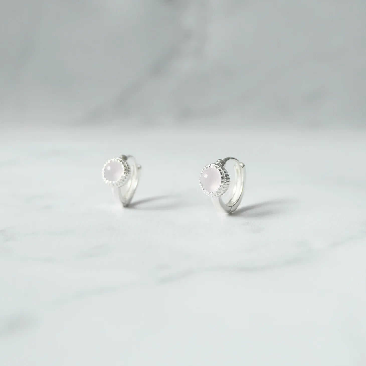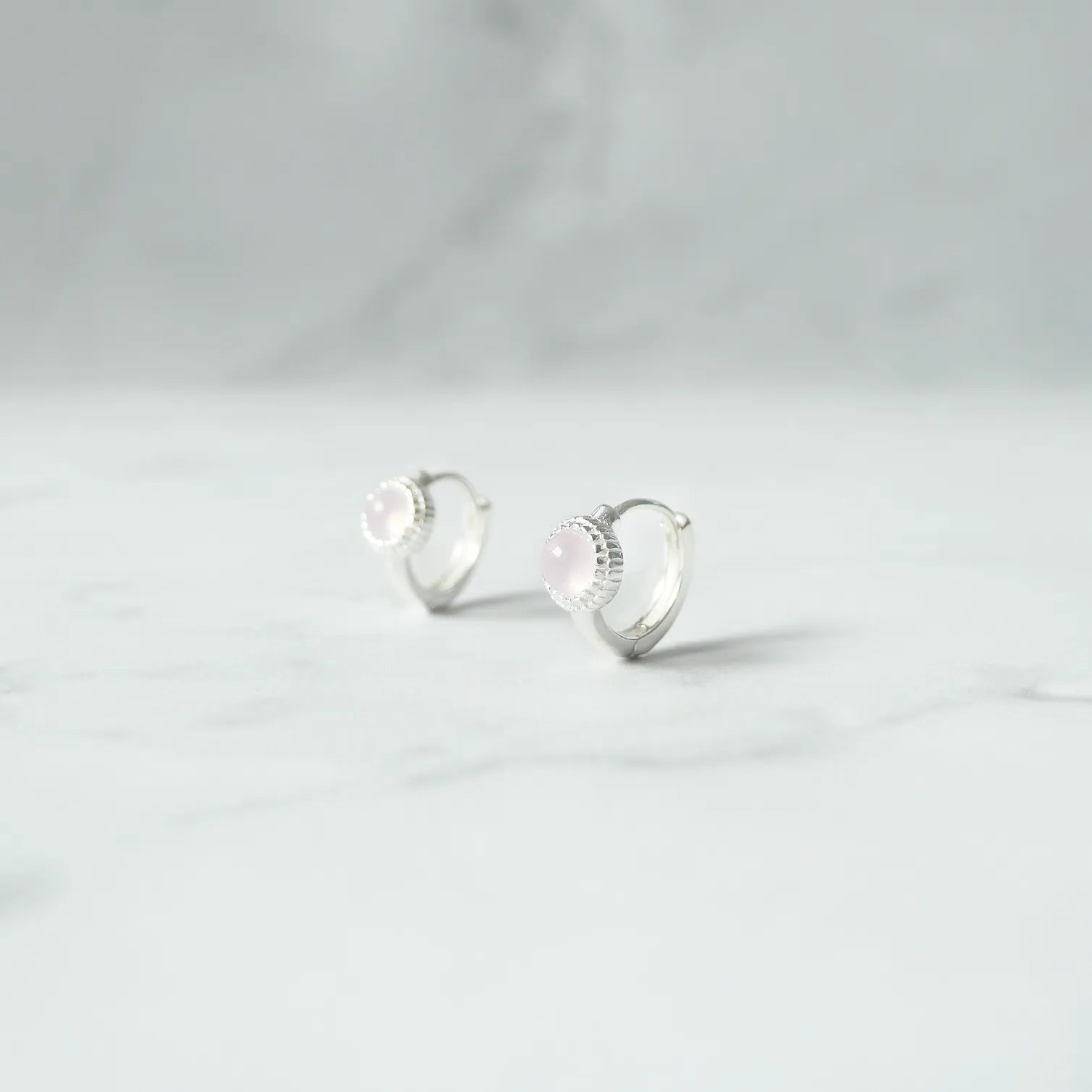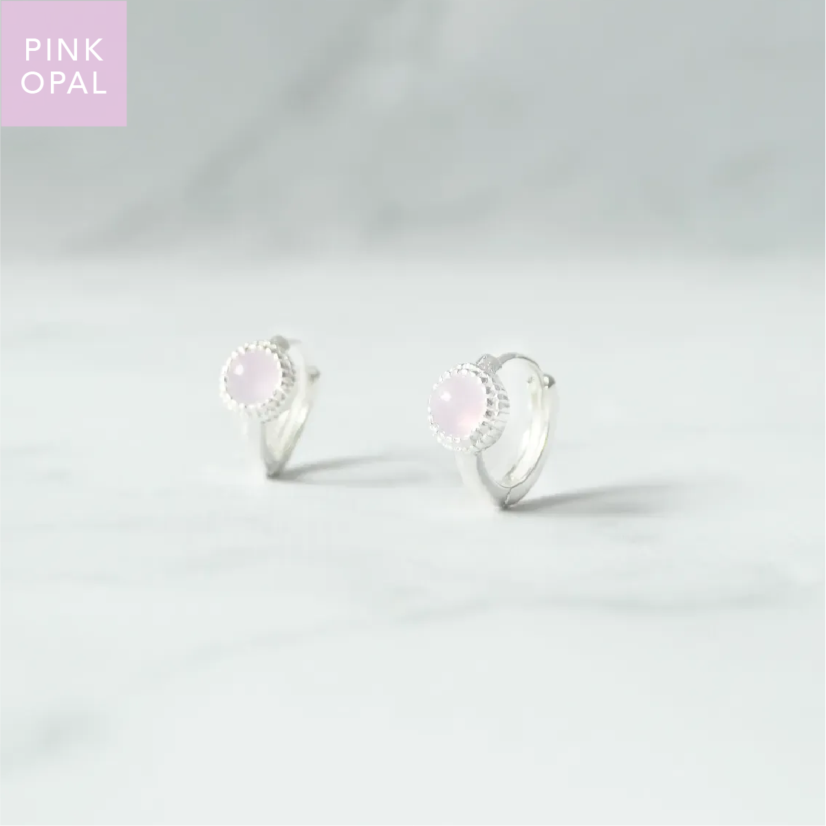 淡くやわらかなピンクが肌に自然になじむ、ピンクオパールのハギーピアス。控えめなサイズ感のなかに、やさしい存在感と洗練された印象を宿しています。