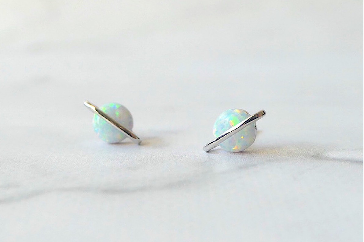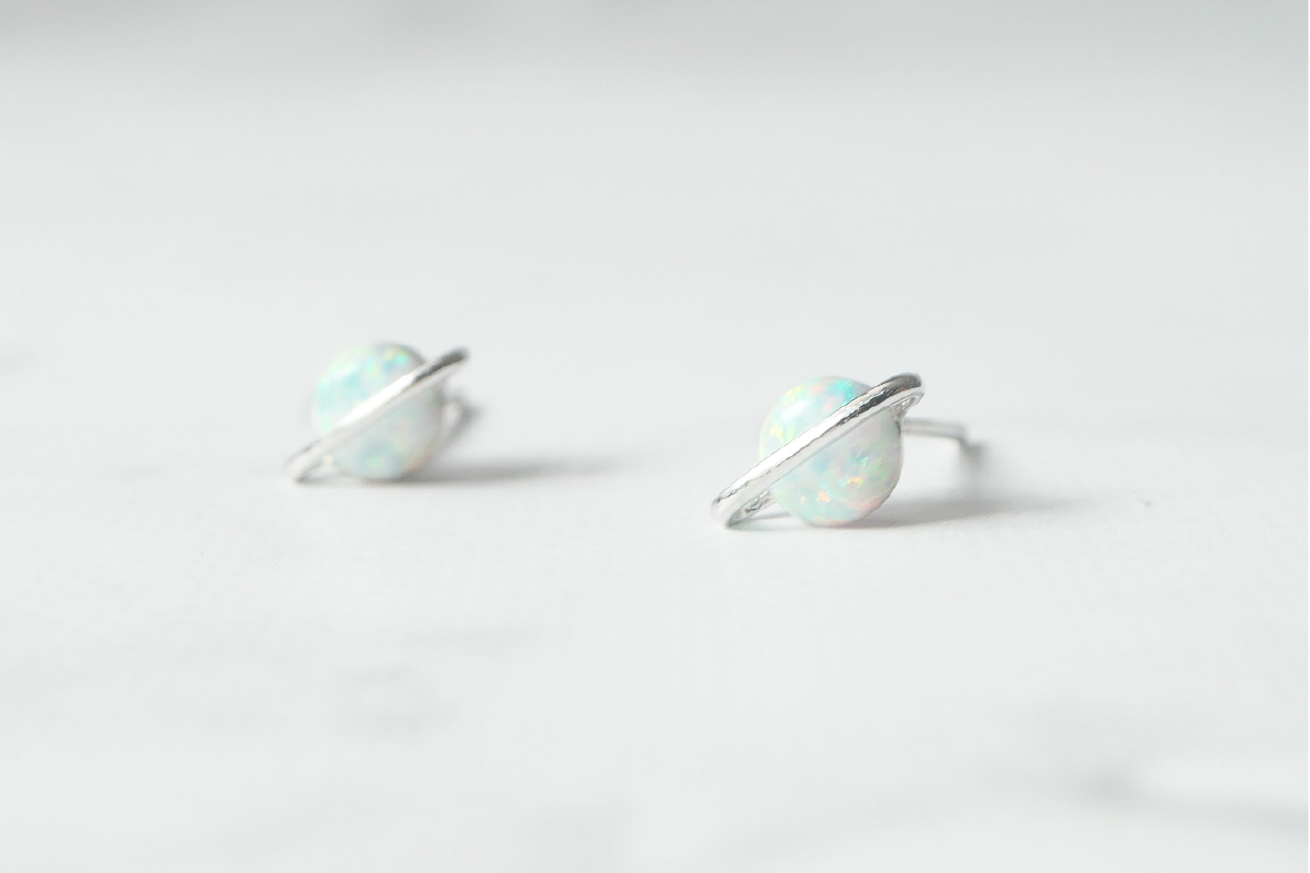 オパールを包む丸いシルバーフレームが立体感を生み、惑星のような独特のモチーフに。